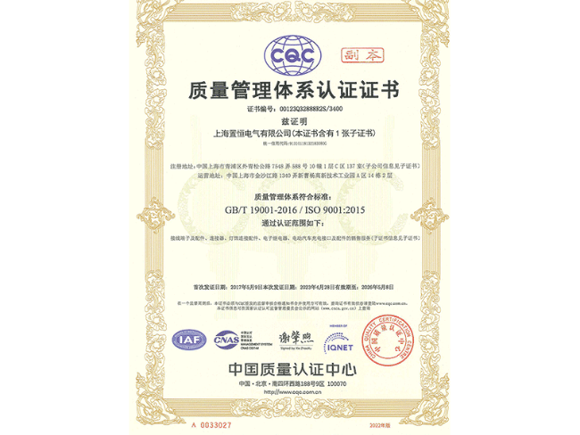 ISO9001證書(質(zhì)量管理體系認證證書)